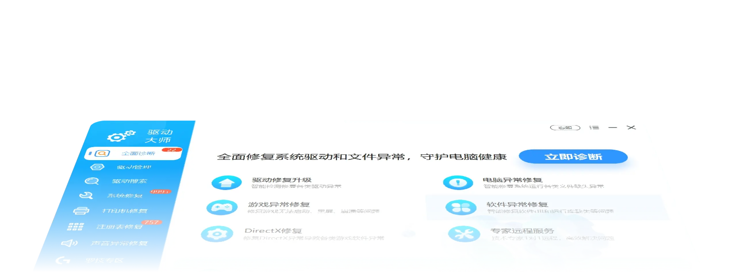 一键完成电脑驱动修复,解决99.99%显卡、蓝牙、声卡、网卡等驱动故障!